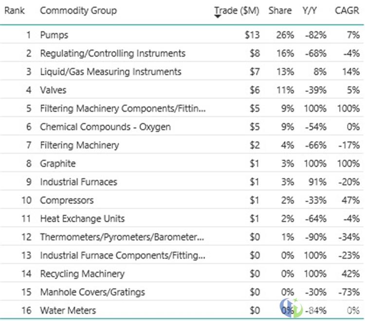 近年来,中俄贸易中能源、环保仍占据优势地位。相比传统能源石油天然气,环保行业的产品门类无疑更加丰富,其中环保类管道、泵阀、过滤器以及精密仪表仪器在榜单中名列前茅。