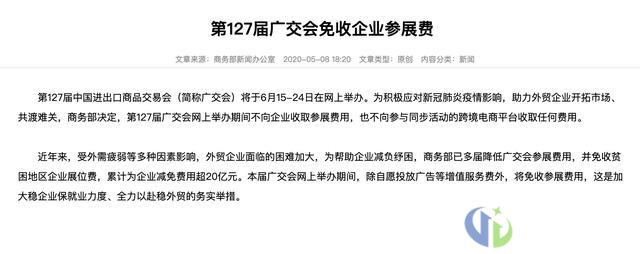 近日,商务部再释放重大利好,本届广交会将不向企业收取参展费用,也不向参与同步活动的跨境电商平台收取任何费用。