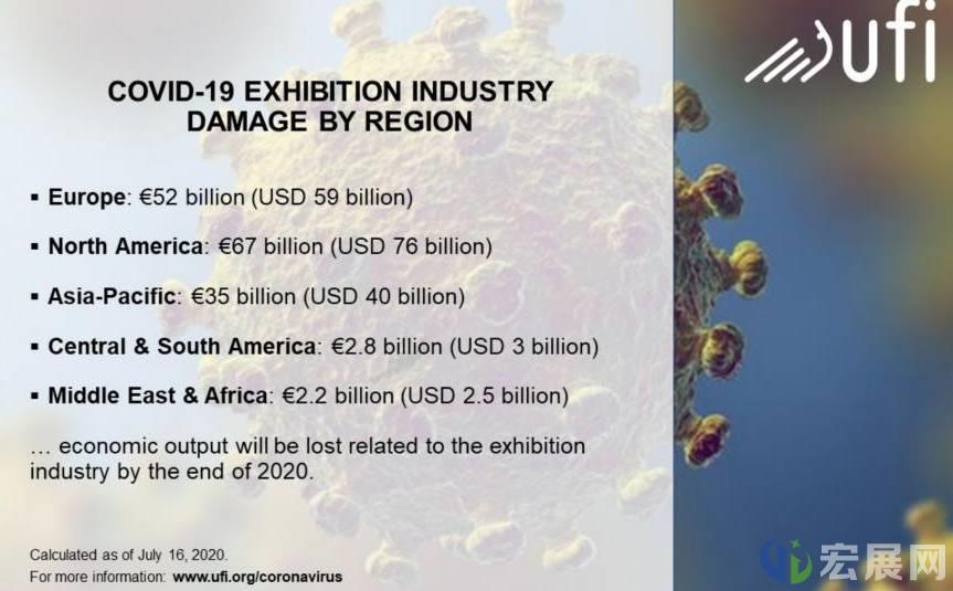 根据最新的COVID-19损害评估,与展览和旅游相关的活动中,总产值约1800亿美元和190万个工作已经受到影响,与展览参与者之间的约2960亿美元的合同未按预期产生。UFI报告称,全球范围内,2020年上半年的行业收入平均比去年同期下降了三分之二。