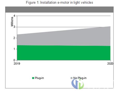 混合动力车型的安装量将大幅增加至180万台,而2019年的安装量将近100万台,从而推动电动马达市场实现正增长。
