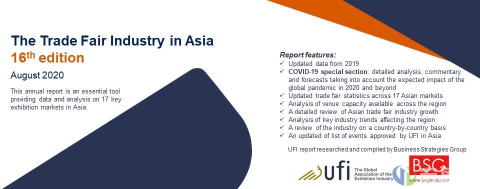 全球展览业协会UFI近日发布了《第16版亚洲贸易展览会研究报告》,研究包含了对亚洲展览行业在前所未有的全球危机中的分析。本报告由致力于商业战略咨询及专业市场研究的BSG公司编制,涵盖了亚洲展览行业在2019年的实际表现,以及对2020和2021年间的预测。