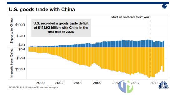 另外,两国还想通过签署第一阶段贸易协议,来推动中国从美国进口更多的货物,来解决两国之间商品贸易不平衡问题。但专家表示,随着两国关系的不稳定和疫情对全球经济活动的冲击,今年两国之间的贸易关系可能会进一步恶化。
