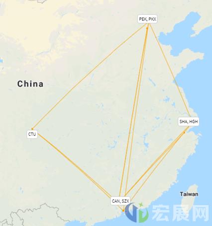根据OAG统计,在中国,北京-上海航线最为繁忙,每天有近90个航班往返于这两个大都市。在2020年11月,在全球最繁忙的10条国内航线中,其中中国占了4条航线,连接了5个主要城市,即北京、上海、广州、深圳和成都,这意味着这些城市仍有着较旺盛的出行需求。