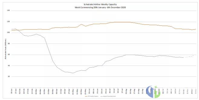 2021年第一季度的计划运力超过10亿个座位,今年同期为12亿,同比仅减少了18%。这可能体现了全球对明年第一季度复苏的信心;但也可能表明,各国航空公司还在探索和调整运力计划。