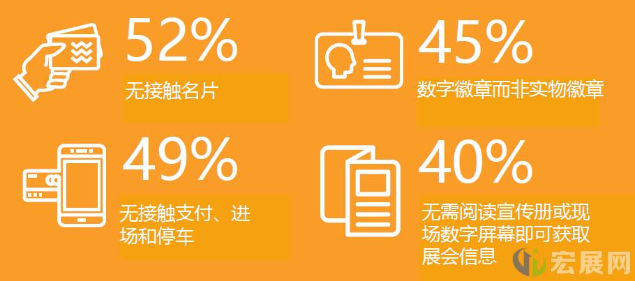 观众和展商表示,无接触技术对于他们在展会中的舒适感来说非常重要,其中76%的观众表示,无接触技术让他们消除疑虑。在后疫情时代,无接触技术还将加快注册和入场的速度,并促进商业联系和信息交流。