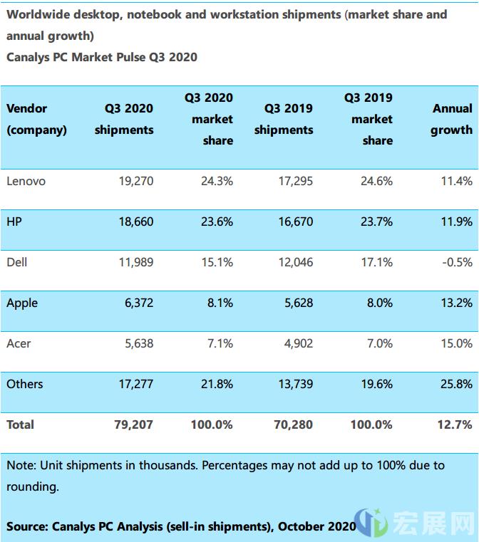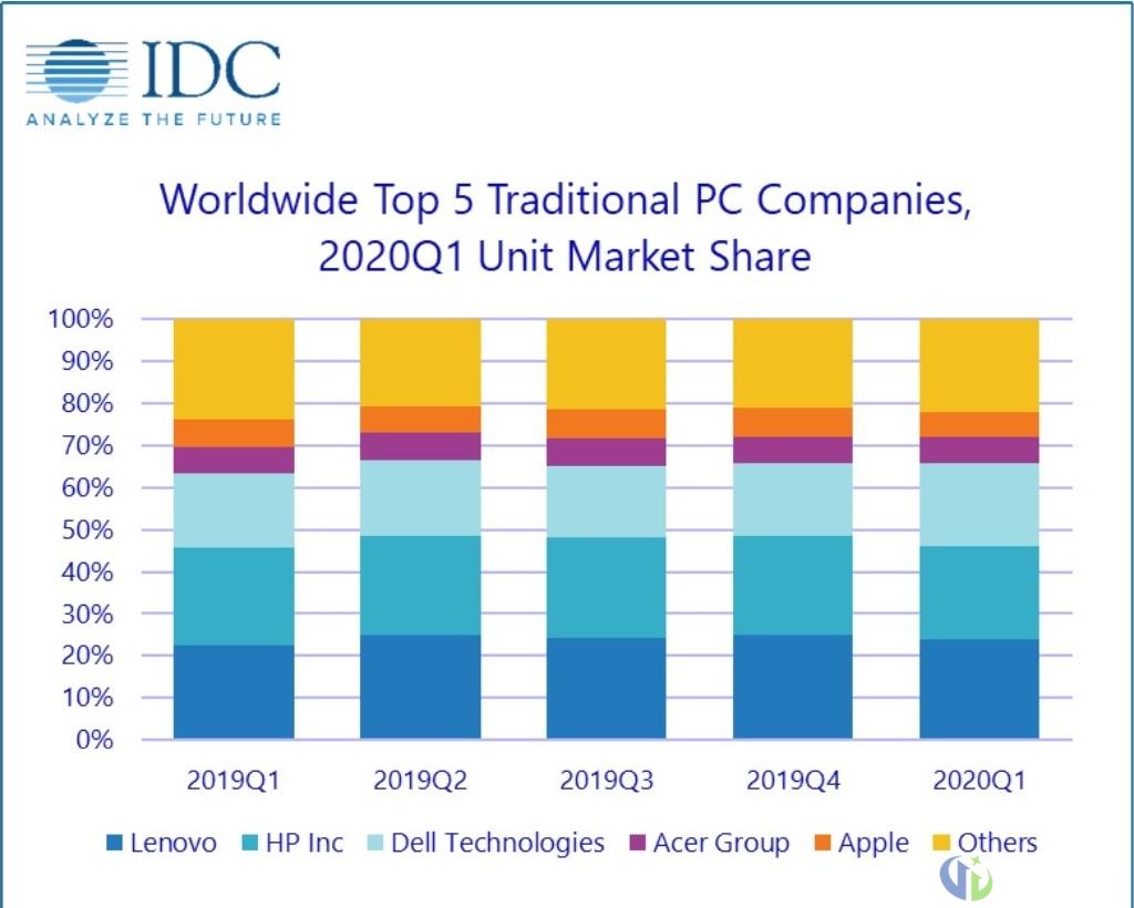 再来说说PC厂商方面,由于年初COVID-19疫情爆发带来的影响,2020年第一季度全球PC市场下滑接近10%,但另外一方面,由远程办公和居家学习带来的PC销量增长仍然为几大厂商的业绩有所加码。