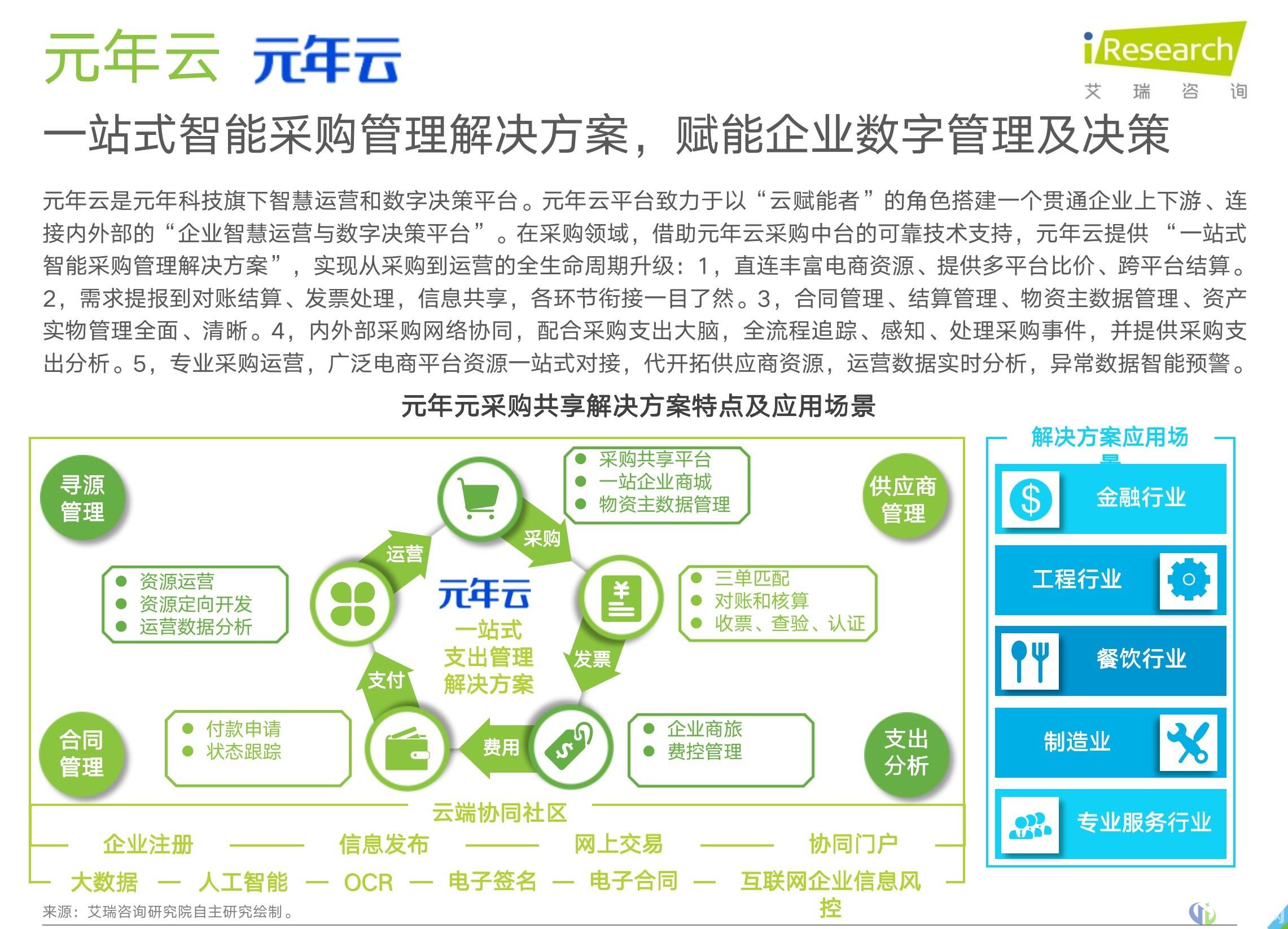 近日,元年云联合艾瑞咨询发布《2020年中国采购数字化管理调研白皮书》。作为云端一站式采购支出管理厂家,元年云入选本次报告中的典型案例,并且同时名列采购数字化管理厂家产业图谱。