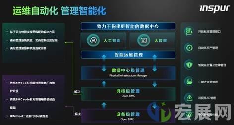 目前,浪潮已经构建了从设备级到数据中心级的智能运维管理体系,通过融合面向节点运维的 OpenBMC 技术、面向整机柜运维管理的 OpenRMC 技术,以及面向数据中心整体运维的 ISPIM 解决方案,帮助用户降低数据中心的运维难度,让数据中心运维更加绿色、智能。