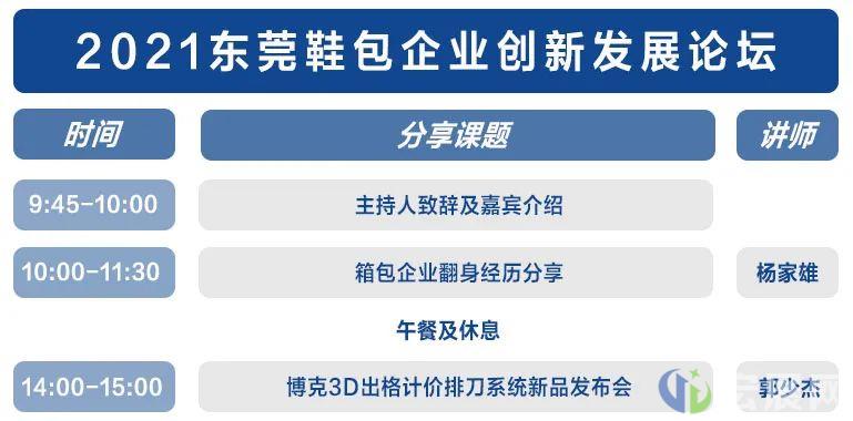 东莞素有“世界鞋都”之称,以中高端鞋包制造为主,配套产业链完善,在国内乃至世界都具有引领与标杆作用。2021东莞鞋包企业创新发展论坛将于4月1日开启,届时邀请行业内部分知名企业分享,探讨箱包行业目前存在的数字化转型存在的问题及解决方案,解读新技术、新产品的应用范围及未来发展趋势。