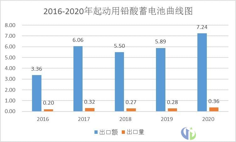 2016-2020年起动用铅酸蓄电池出口曲线图