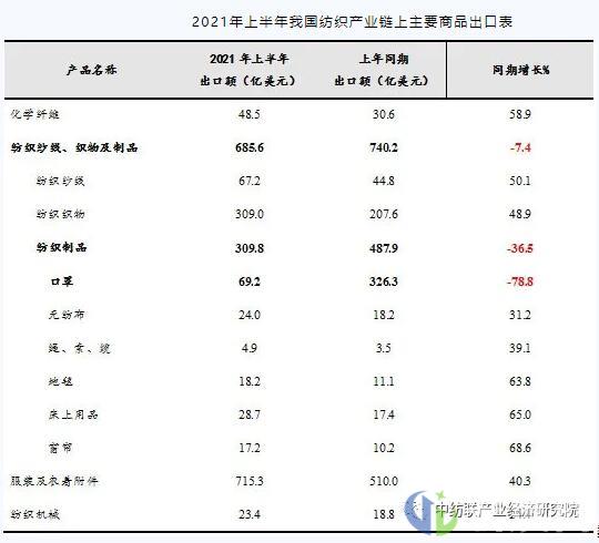 如果排除口罩因素,上半年纺织品出口实现了正增长49.0%。此外,产业链上化学纤维、纱线、织物及纺机等主要商品出口都出现增长。全球经济持续复苏,带动外部需求增加,对我国纺织产品出口起到提振作用。
