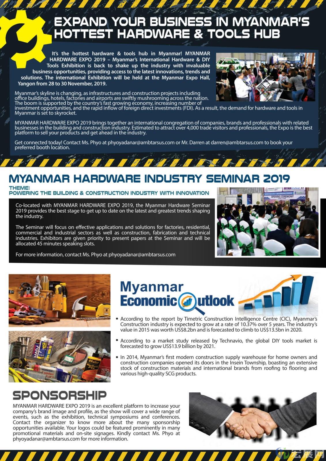 缅甸仰光国际五金及手工具展览会MHE在缅甸仰光会展中心举行,该展会由AMBTarsus展览公司主办。该平台将成为行业决策者的重要聚会,包括工厂主、开发商、承包商、翻修商、建筑业主、建筑设施经理、制造商、室内设计师、五金、园艺和DIY产品的分销商和零售商。