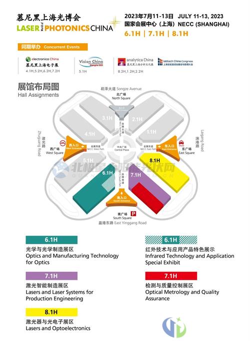 本届展会将在国家会展中心6.1H、7.1H、8.1H三大馆举办,展示面积较上届扩增26%,现场将以南登录厅为分界线将展会分成两大阵营,自西向东依次由“光学阵营(6.1H展馆)”过渡到“激光阵营(7.1H、8.1H展馆)”,集结千家企业带您领略“左看光学、右看激光”火爆场面。